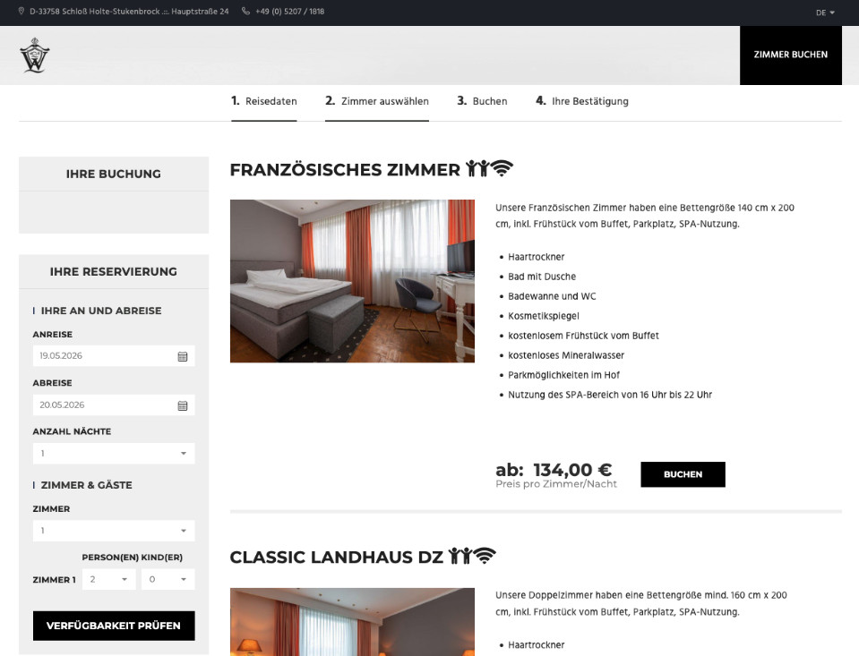 Alle Kategorien sind buchbar. Über einen Channel Manger werden 6 DZ und 2 Suiten an die Kanäle übermittelt. Gebündelt werden die Kategorien über einen Zimmer Pool.